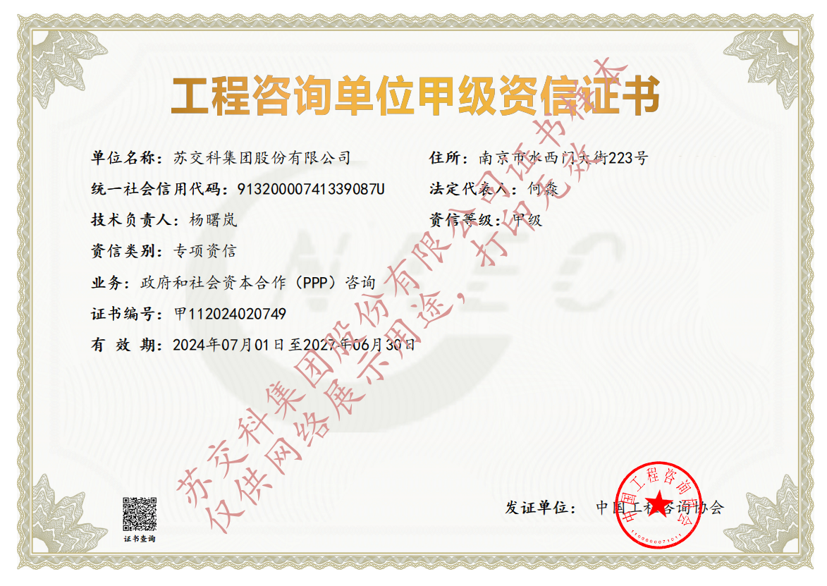 蘇科建設市政公用工程監(jiān)理甲級