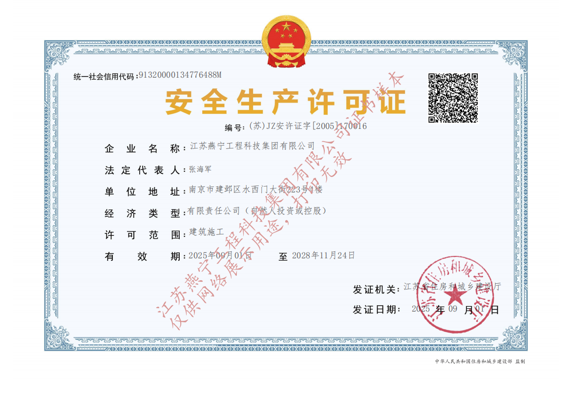 燕寧工科安全生產許可證